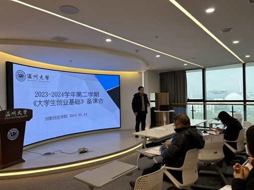 为进一步提升教师教学能力,提高教学质量和水平,努力打造具有温州特色、具有影响力的国家精品创业基础课程,3月14日下午,我院在科创大楼五楼路演厅举办2023-2024第二学期备课会,会议由詹萌博士主持。