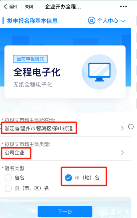 登录 “浙里办”,搜索栏输入 “市场监管业务办理 —— 企业开办”,进行公司名称查重。